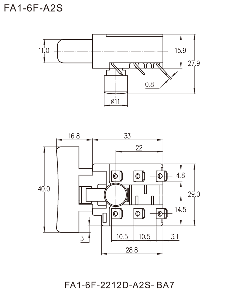 FA1-6F series are general type trigger switches, integrated dustproof, commonly for used in portable power tools such as Electric Drills, Rotary Hammers, Reciprocating Saws, Jig Saws, Angle Grinders, Electric Mixers, Cut-Off Machines, Marble Cutters, Electric Routers, Circular Saws, Belt Sanders, Orbit Sanders, Polishers, Electric Planers, Electric Sprayers, Electric Nailers, etc. Besides, they are also suitable for power gardening tools, such as Grass Trimmers, Electric Chain Saws, Electric Lawnmowers, Electric Snowthrowers, etc.
