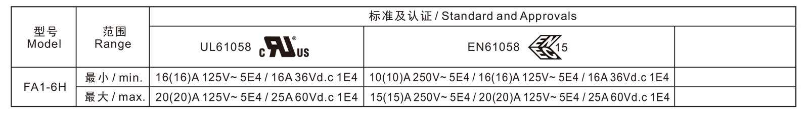 电气参数和认证 Electric Rating and Certification