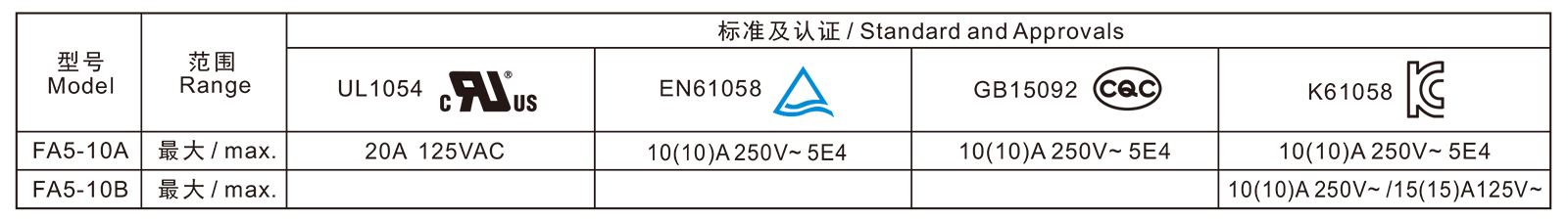 电气参数和认证 Electric Rating and Certification