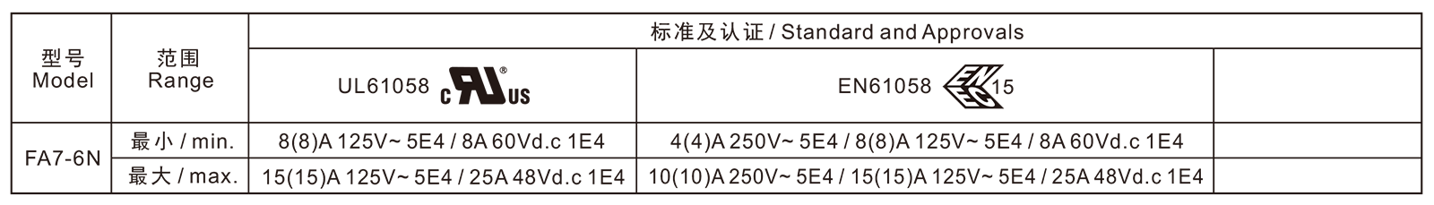 电气参数和认证 Electric Rating and Certification