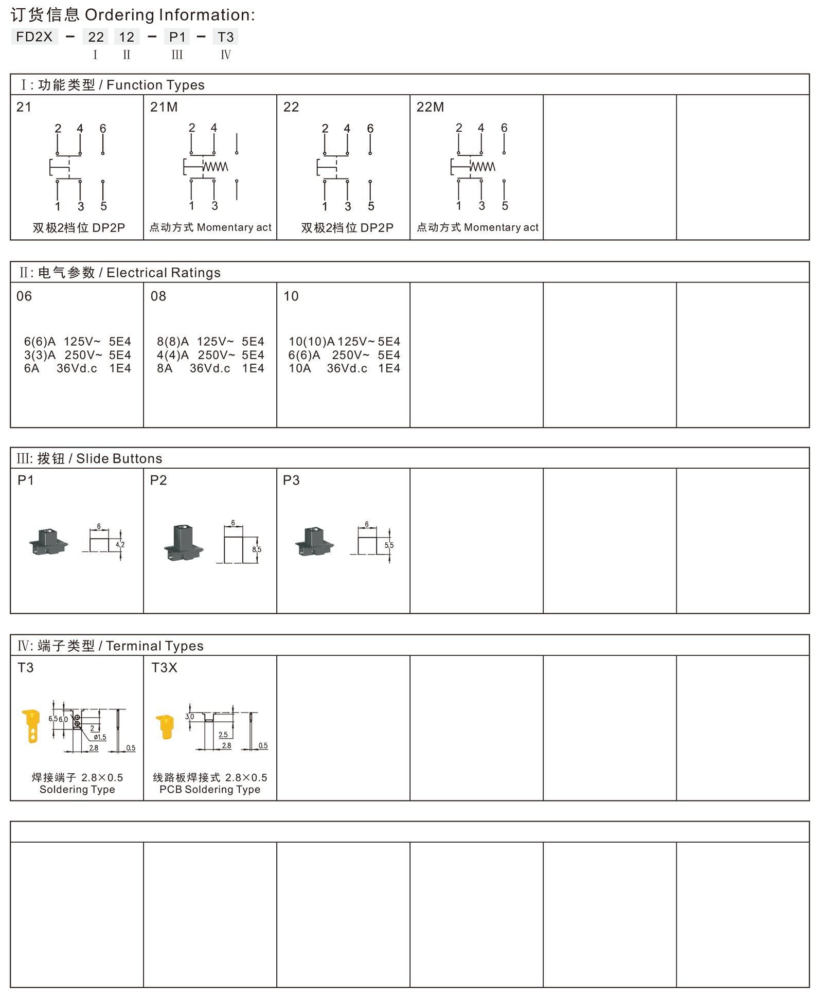 FD2X滑动(推拉)开关