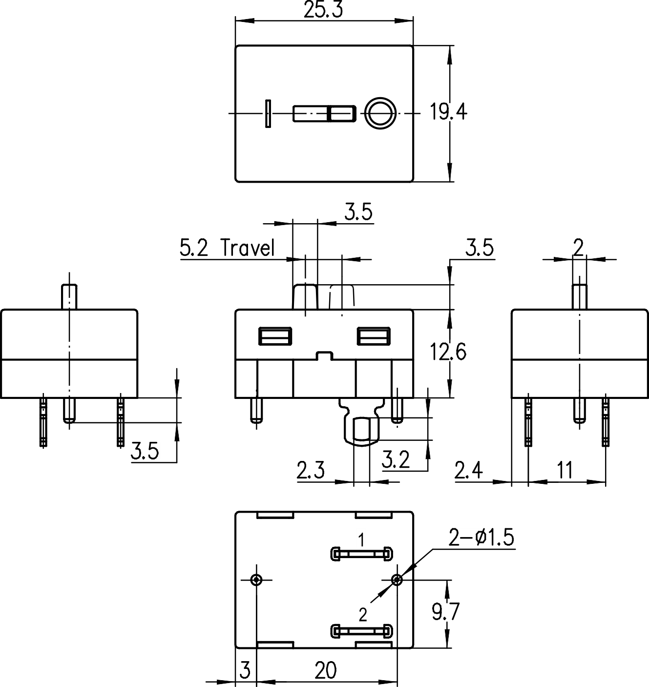 →单极双掷 SPDT (Single Pole Double Throw)