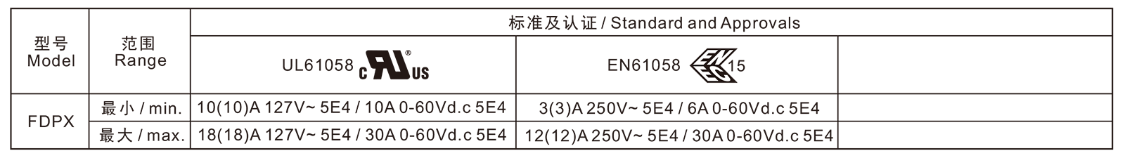 电气参数和认证 Electric Rating and Certification