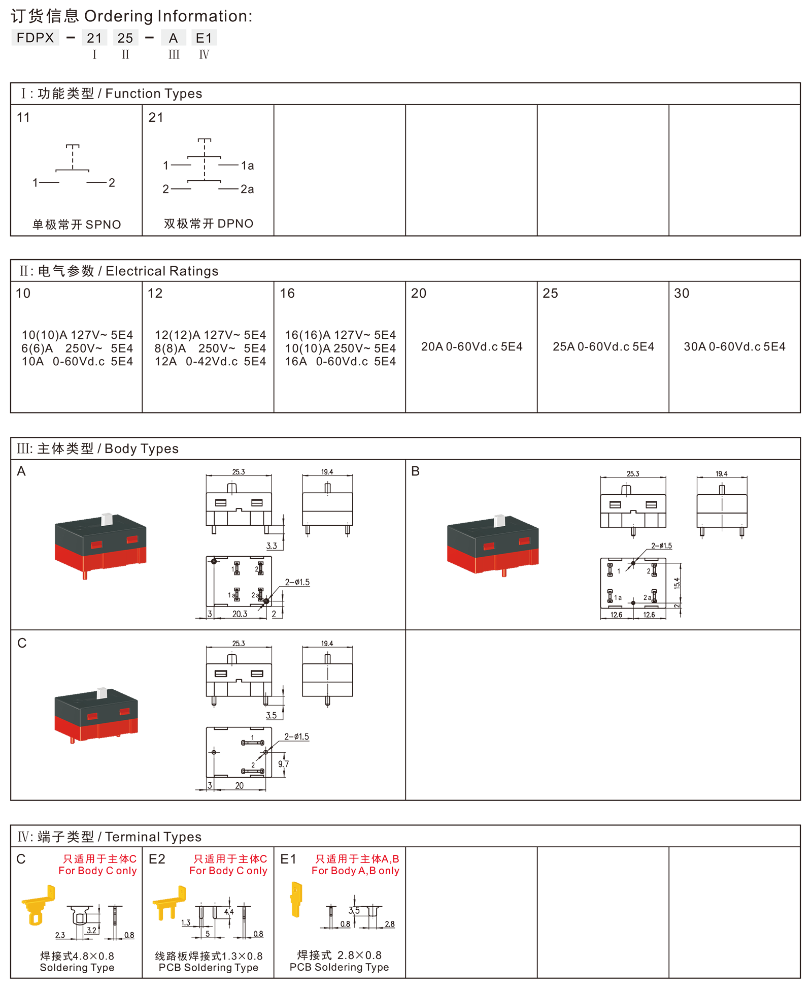 ◆FDPX series are general type slide switches, with snap-action structure, commonly for used in power-tools such as 100mm and 125mm Angle Grinders, Multi-function Tools, etc.