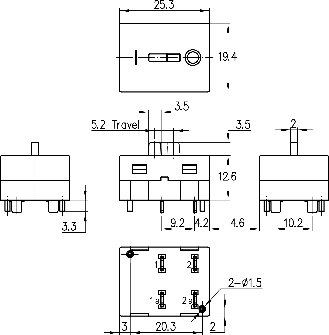 →单极双掷 SPDT (Single Pole Double Throw)