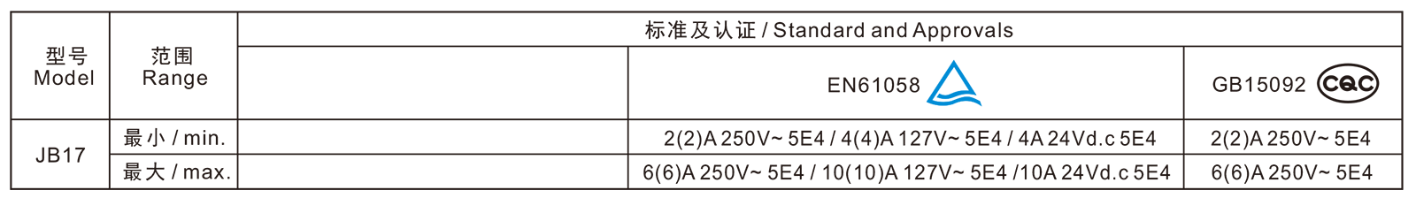 电气参数和认证 Electric Rating and Certification