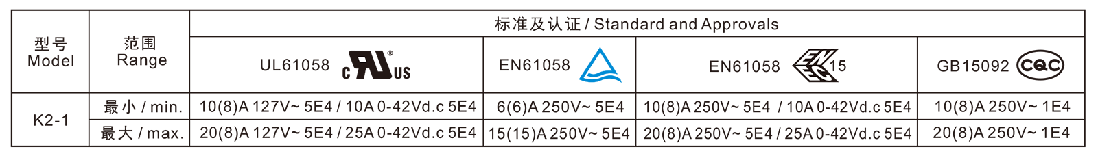 电气参数和认证 Electric Rating and Certification