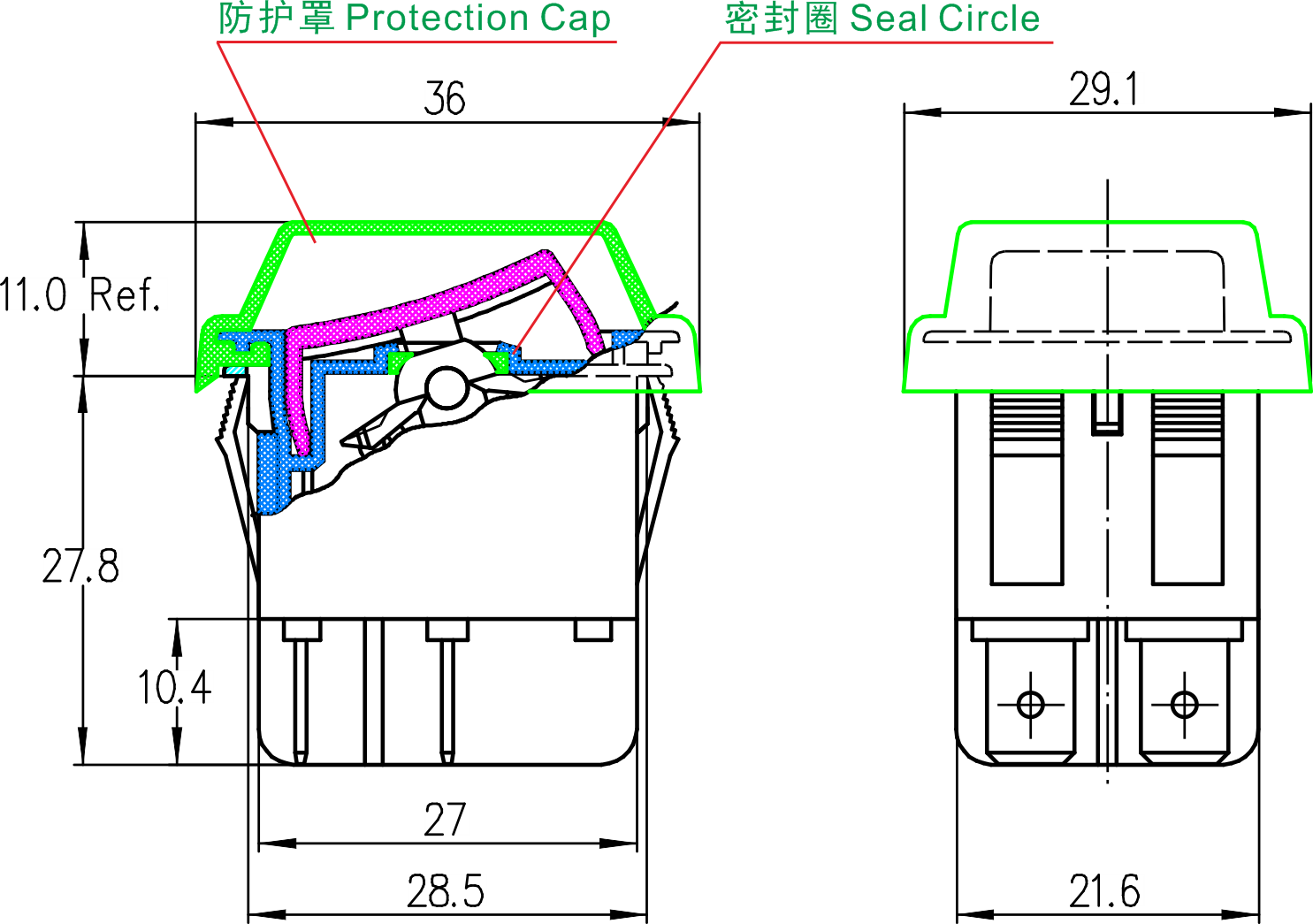 K2-2 series (Dustproof and Waterproof) Rocker Switches