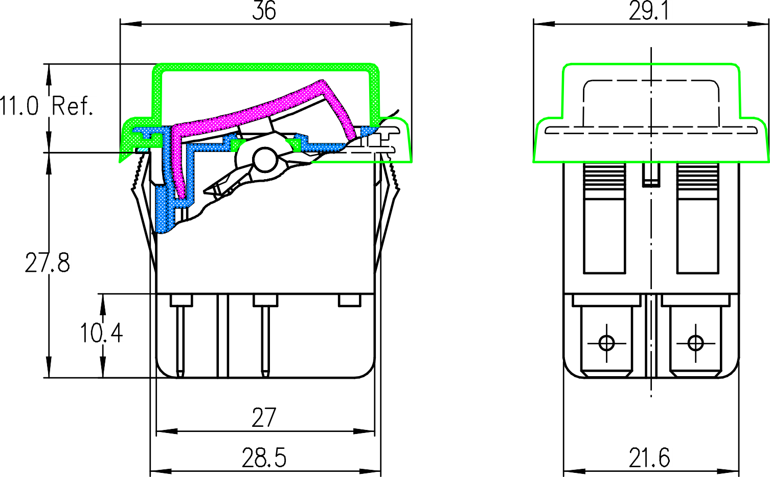 K2-2 series (Dustproof and Waterproof) Rocker Switches