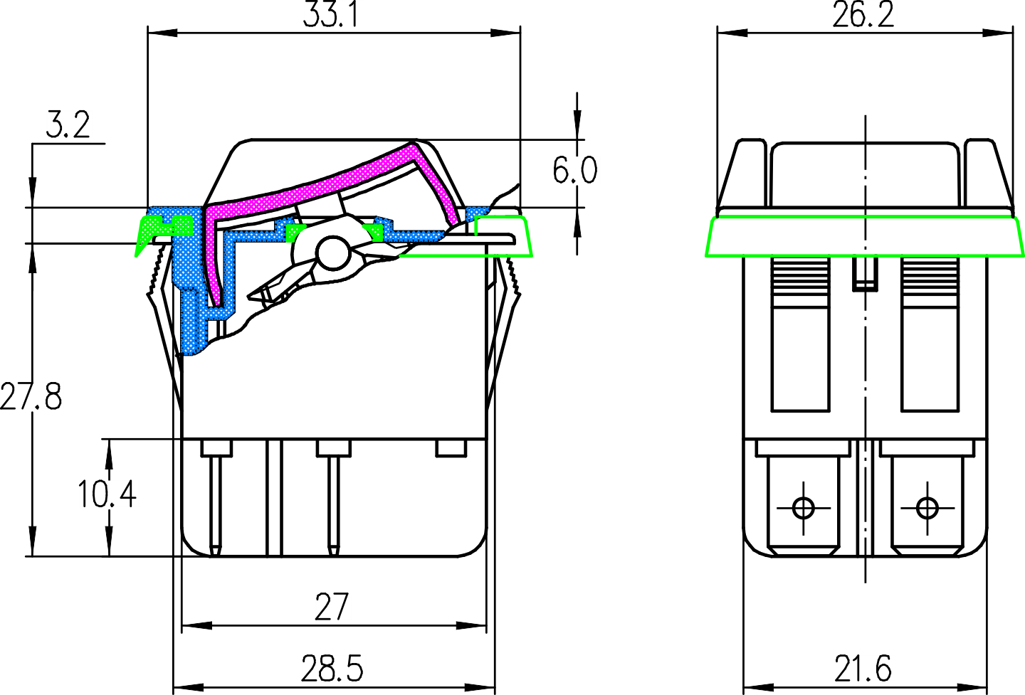 K2-2 series (Dustproof and Waterproof) Rocker Switches