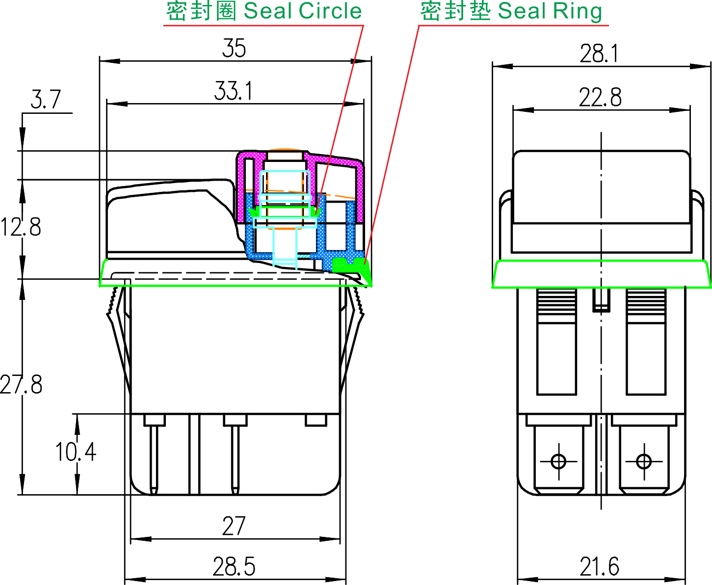 K2-2 series (Dustproof and Waterproof) Rocker Switches