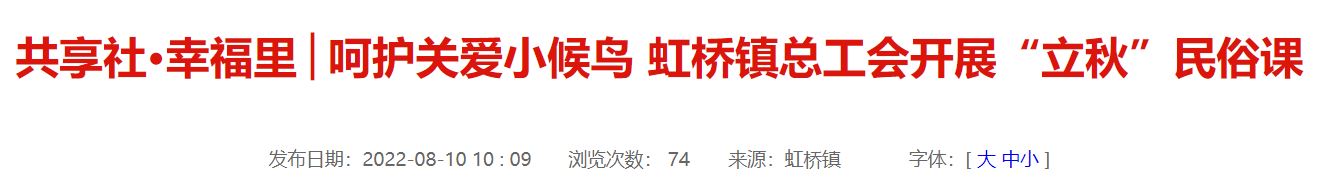 立秋,是秋天的第一个节气。为弘扬中华民族传统文化,提高孩子们的生活常识,8月5日,虹桥镇工会联合建强村,在村党群服务中心为“小候鸟”开展以“立秋”为主题的民俗课。活动邀请到了温州市级米塑非遗传承人郑小红,为孩子们讲述二十四节气的由来和民俗趣事。 活动中,郑老师向学生们逐一介绍了二十四节气的名称及其在一年中的时间先后顺序,从农事、饮食等方面生动形象地讲述了乐清人民在二十四节气时的风俗习惯。在介绍到立秋“贴秋膘”、“称水”、“摸秋”、“啃秋”等习俗时,在孩子们纷纷举手与
